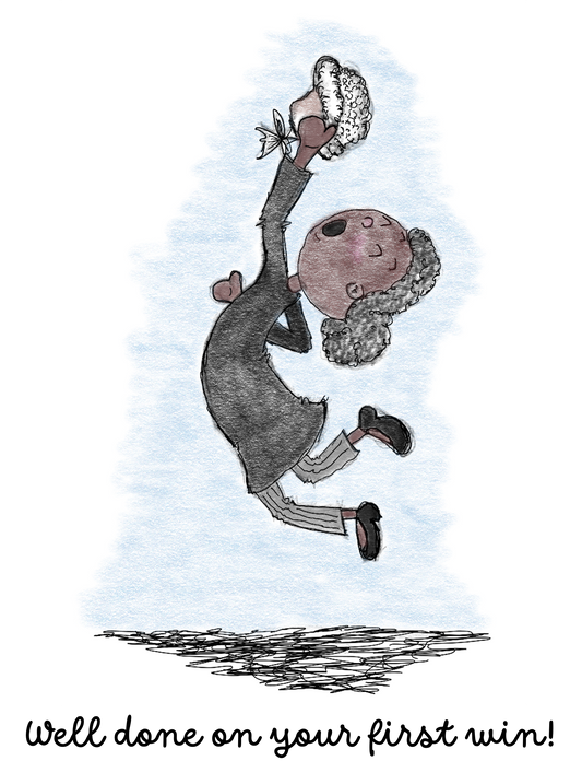 Wigs and Giggles "Well done on your first win" Greeting Card