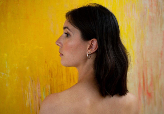 ISHKAR Lapis Lazuli Cradle Stud Earrings in Silver