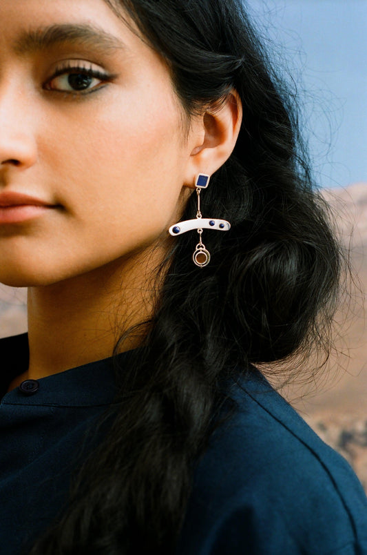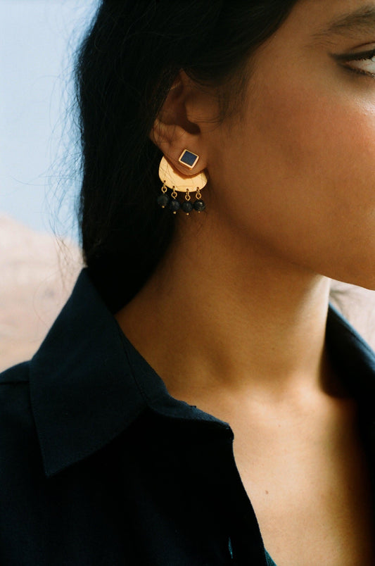 ISHKAR Lapis Lazuli and Agate Malalai Earrings in Gold