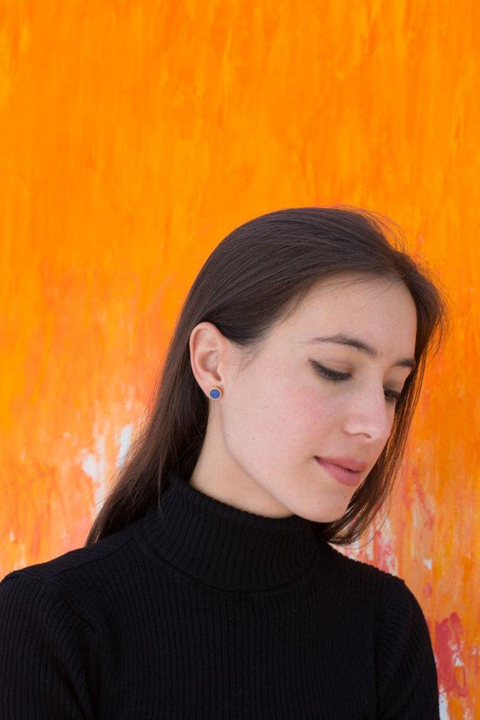 ISHKAR Lapis Lazuli Tops Stud Earrings in Silver